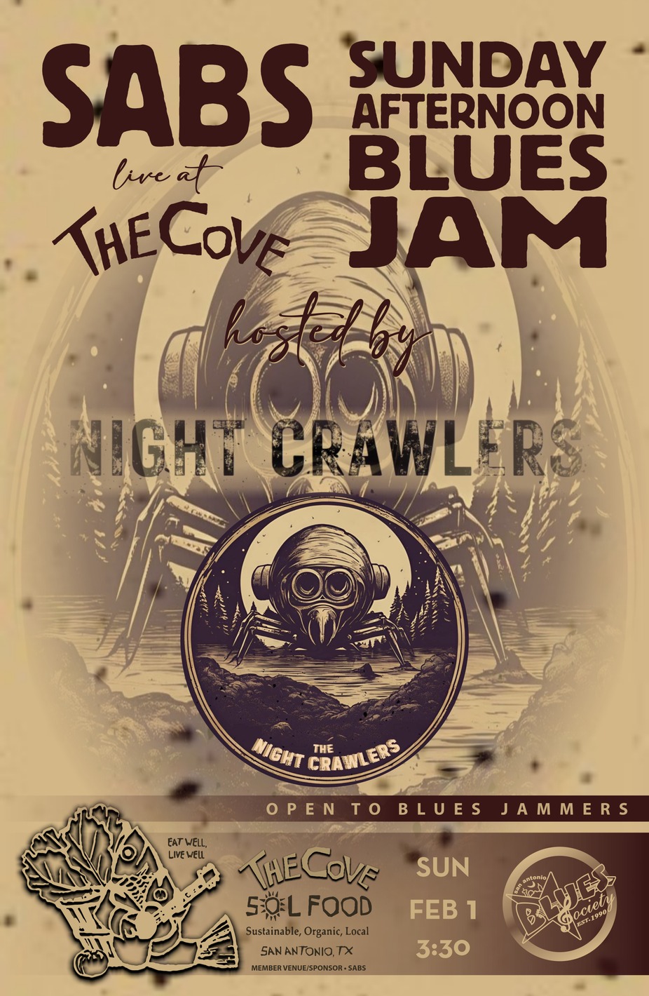 Every first Sunday of the month, join us & the San Antonio Blues Society for an epic afternoon of amazing music & great food! Each month a different SABS member hosts the jam, which features the best musicians from the area.